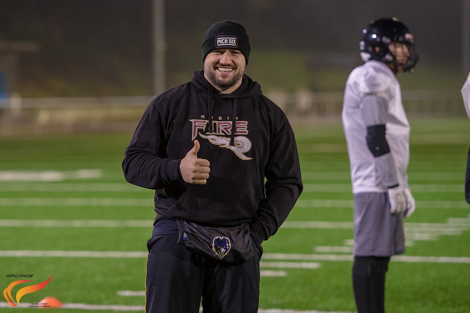 Gestern bekamen die Bochum Rebels prominenten Besuch aus der ELF: Patrick Poetsch, Fullback und Long Snapper von Rhein Fire. ©Oliver Jungnitsch